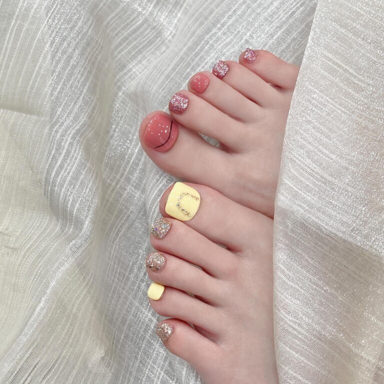 Wujasmine Press on nails Handmade foot wearable nails, fairy toenail patches, new style for summer, sophisticated, fair-skinned toenail art with sequins