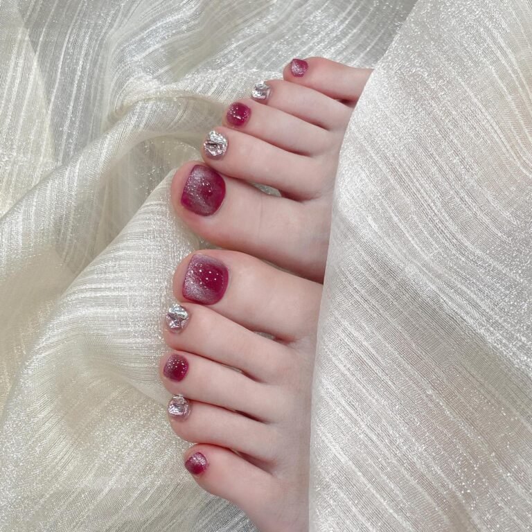 Wujasmine Press on nails Elevate Your Summer Style with Red Sequin Toenail Art