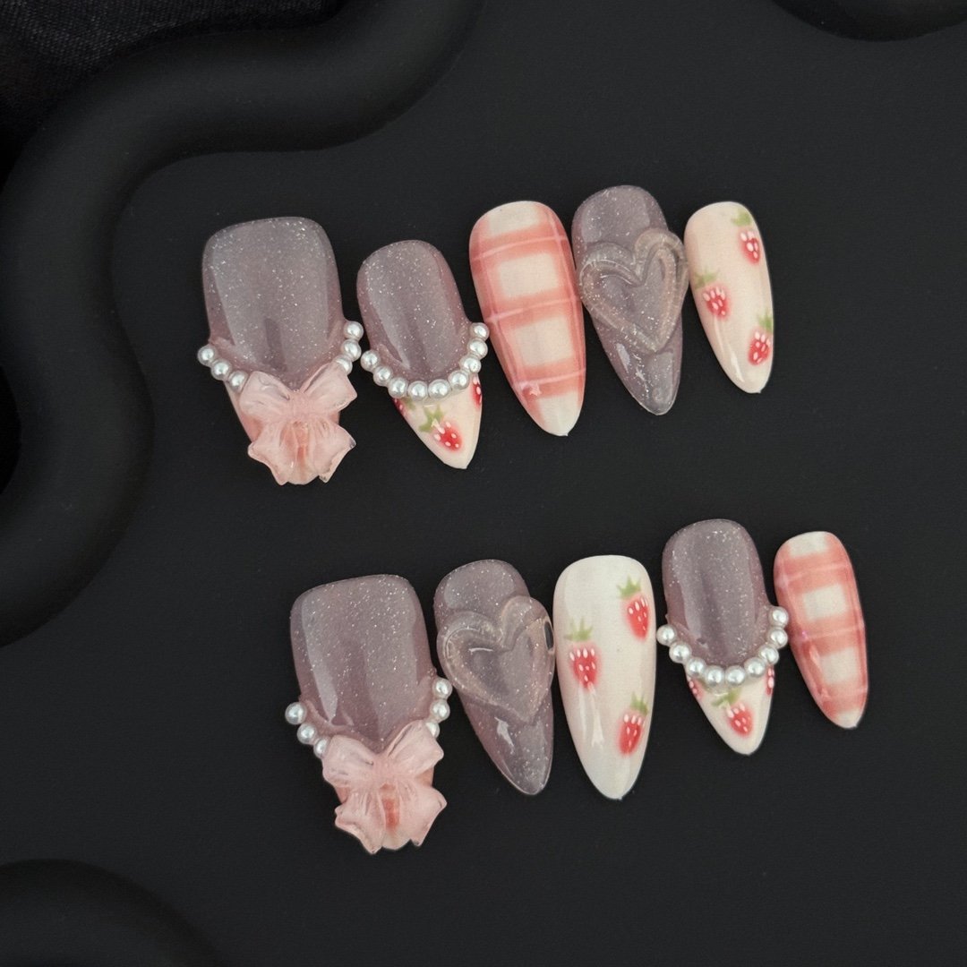 Wujasmine Press on nails fake nails -Strawberry Cheese 🍓🧀