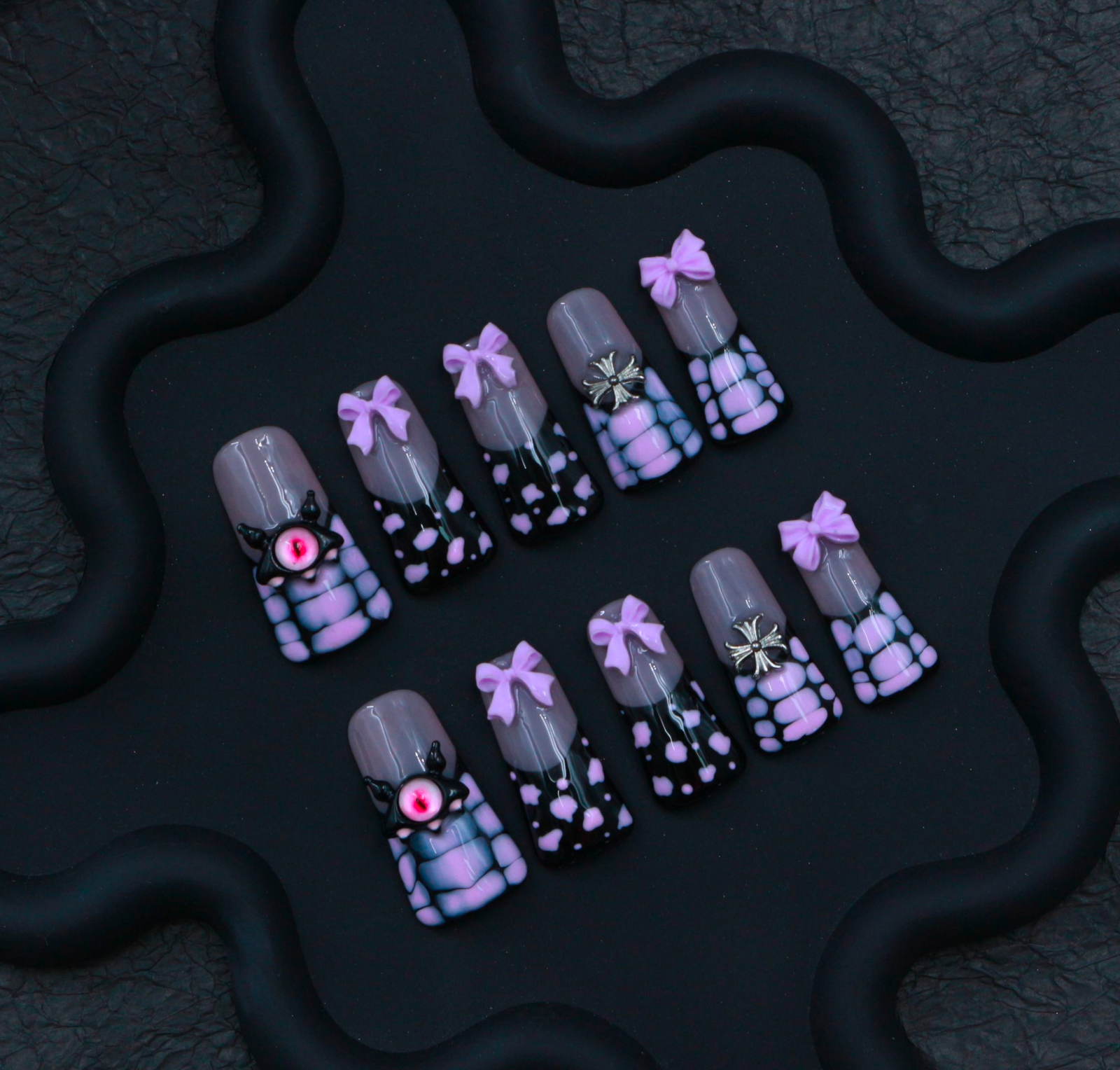 Wujasmine Press on nails fake nails-Purple bow