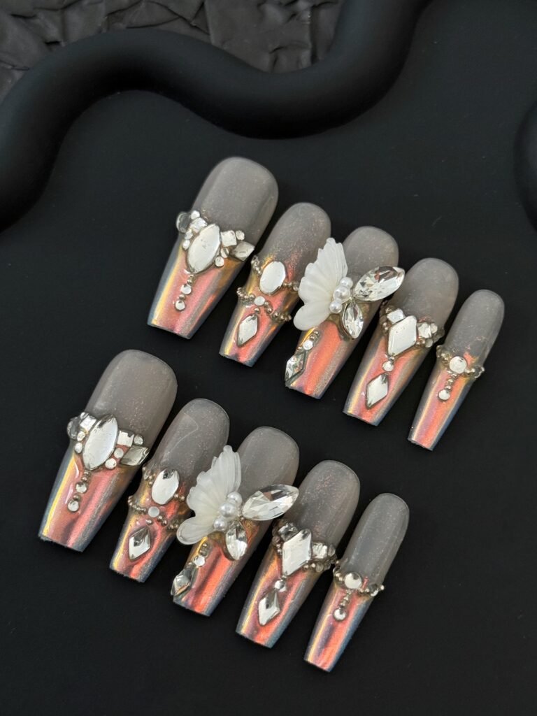 Wujasmine Press on nails fake nails-French Magic Butterfly