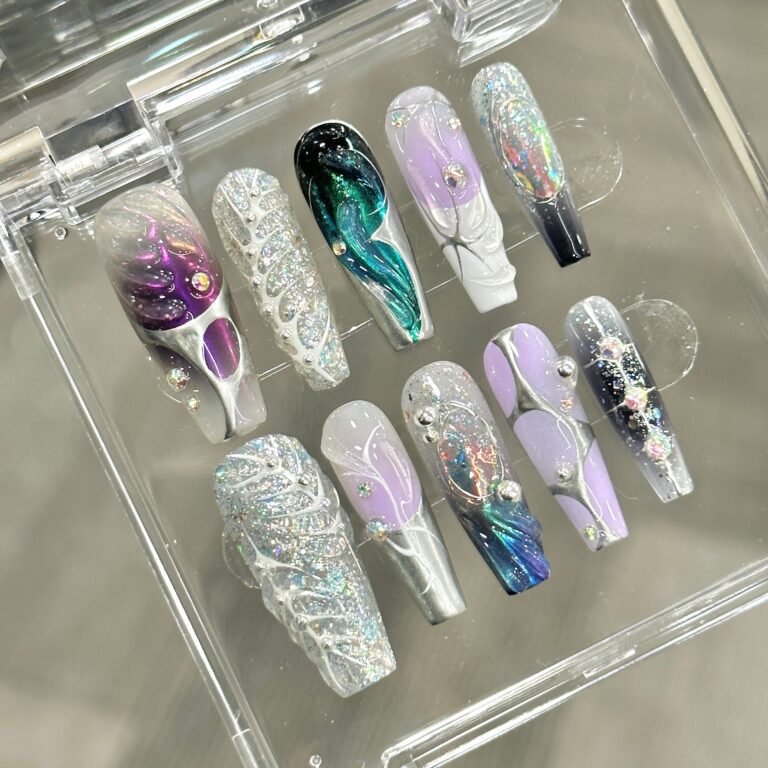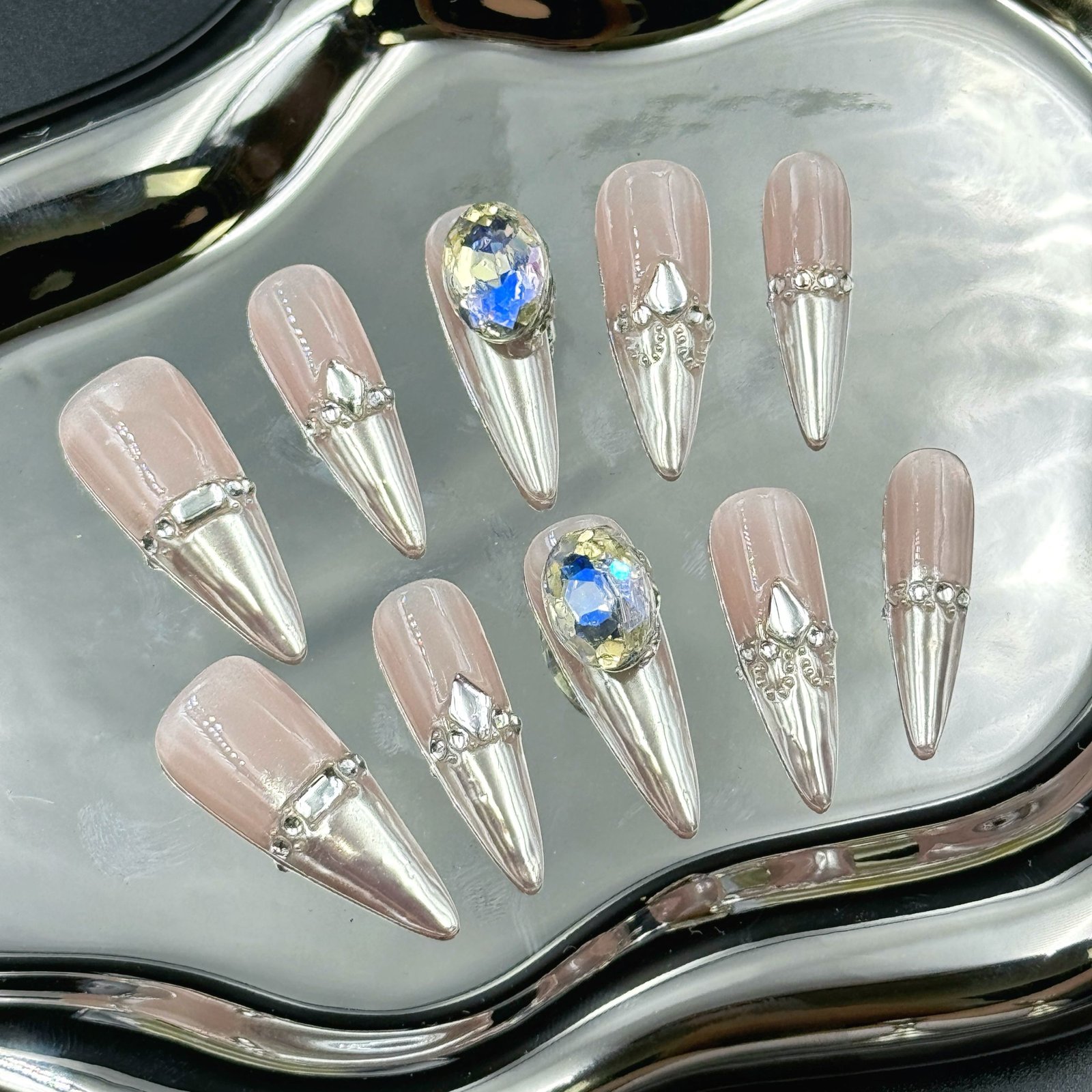 Wujasmine Press on nails fake nails -French Silver Glitter✨
