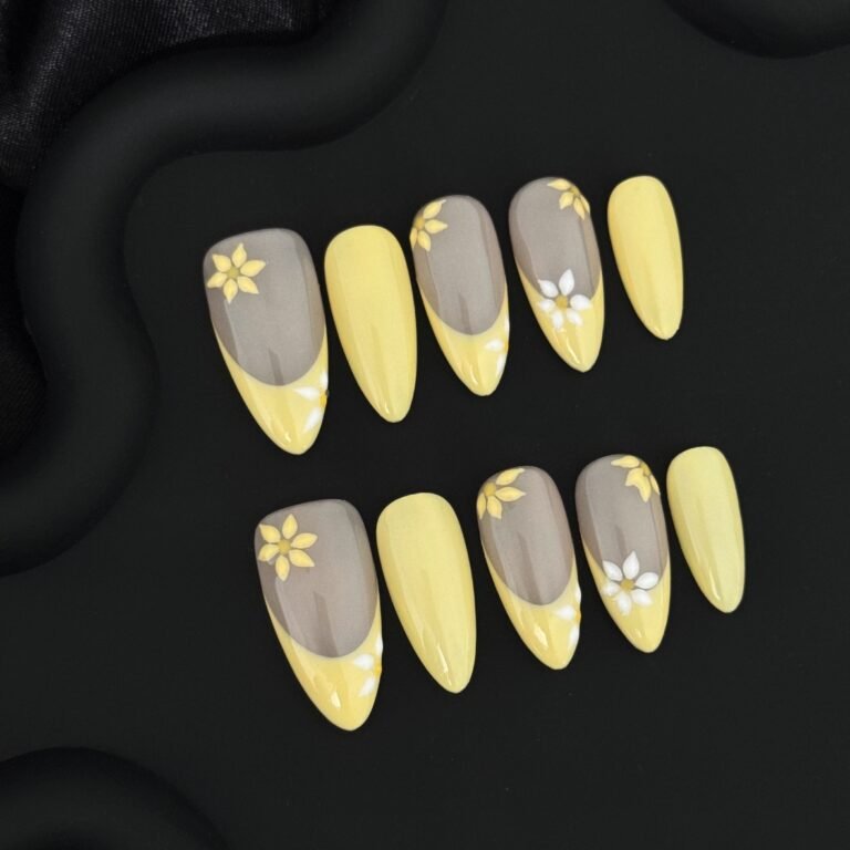 Wujasmine Press on nails fake nails-Light Yellow Daisy 🌼