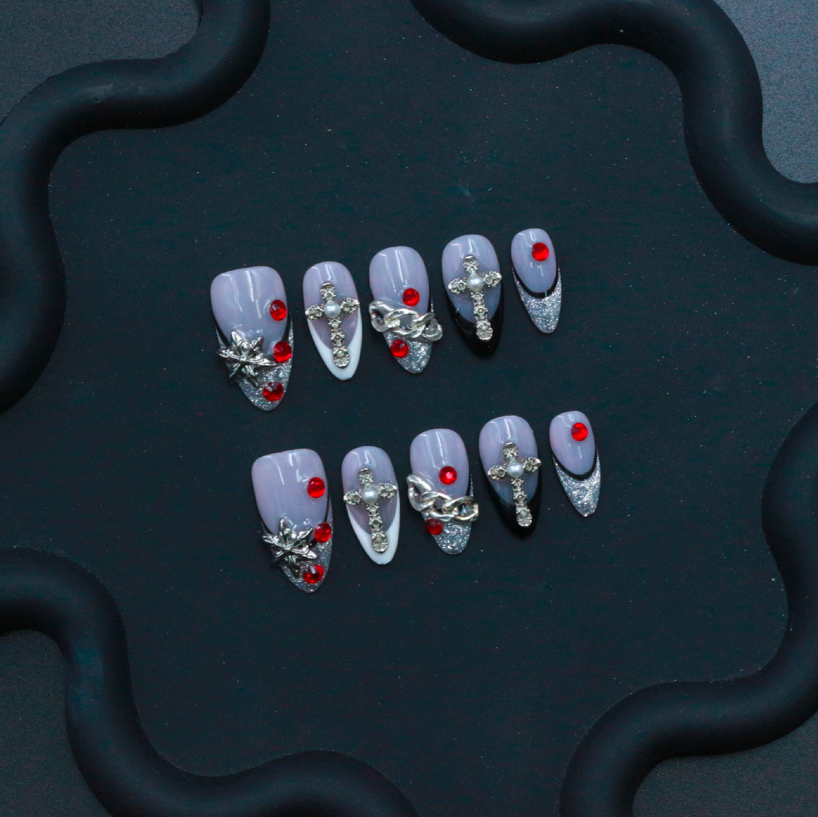 Wujasmine Press on nails-Pearl Cross christmas press on nails