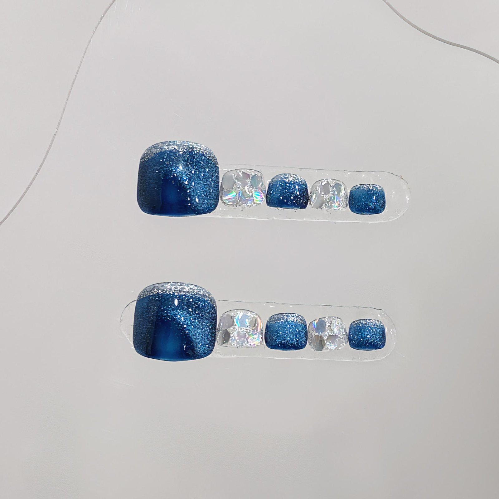 Wujasmine Press on nails Handmade original wearable nails, blue toenail patches, fair-skinned, with a sense of sophistication, toenail art for summer, new style