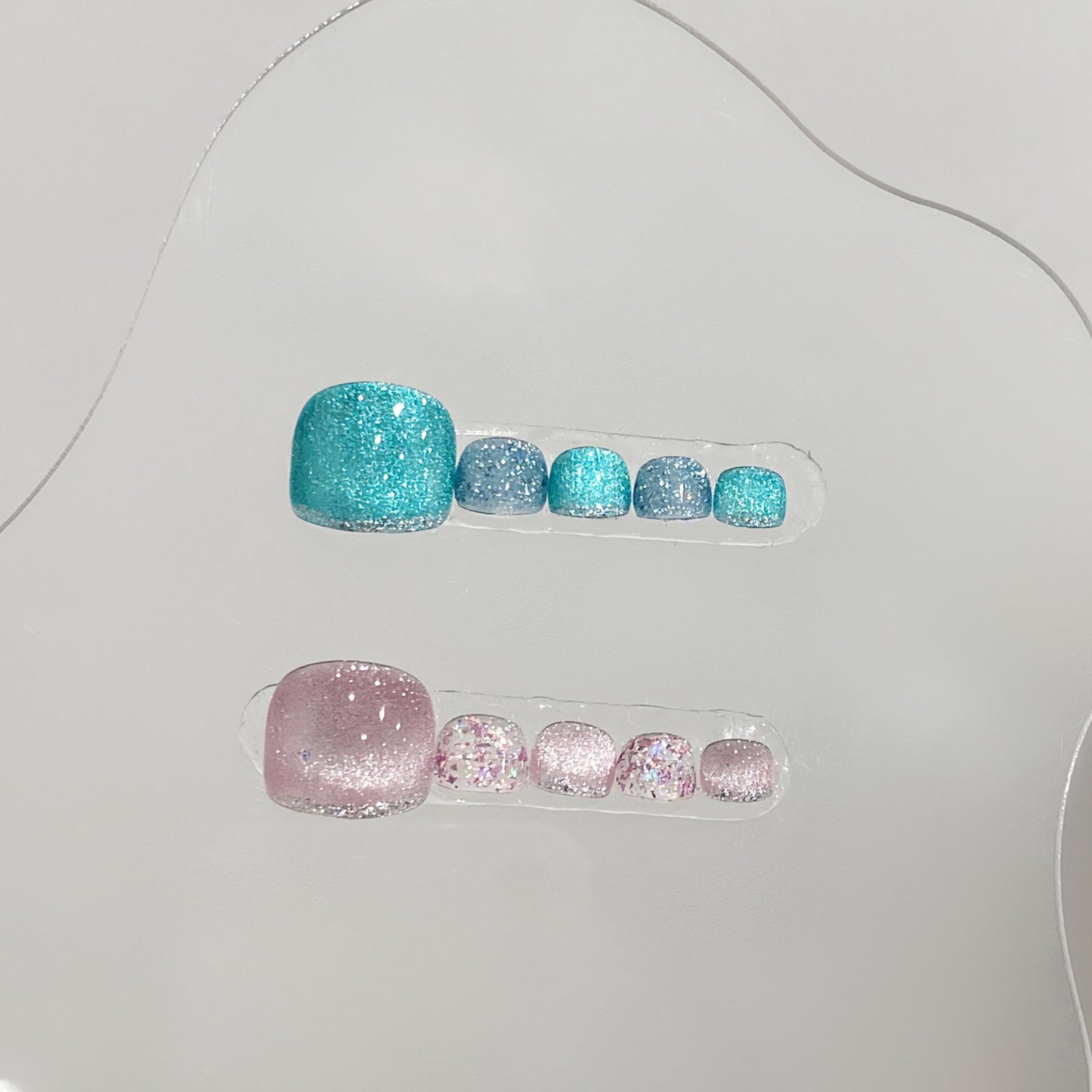 Wujasmine Press on nails-Pure handmade original wearable nails, two-tone toenail patches, fair-skinned blue toenail art in summer, new style