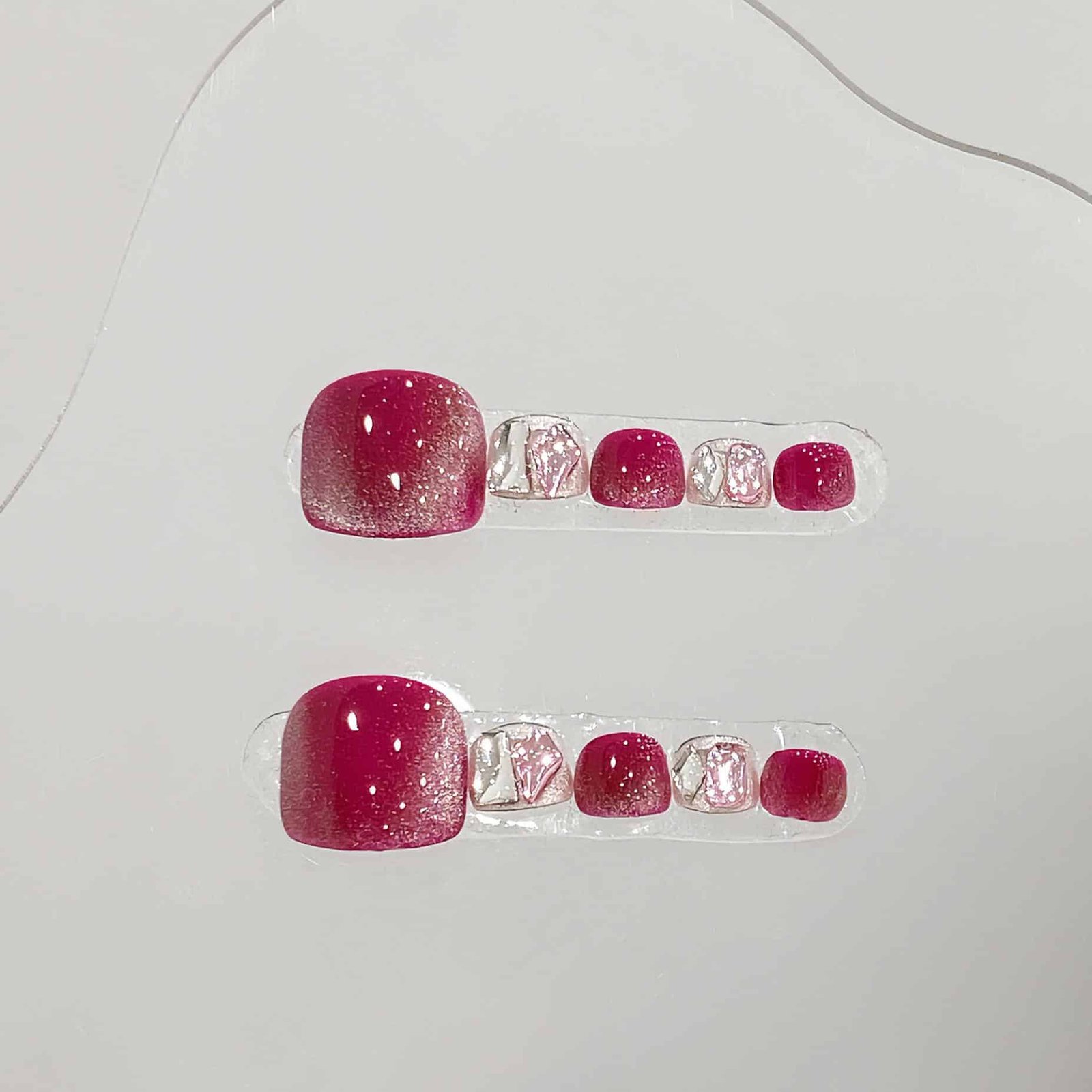 Wujasmine Press on nails Pure handmade original wearable nails with rhinestones and sequins on toenails, fair-skinned and fairy-like toenail art in summer, new style