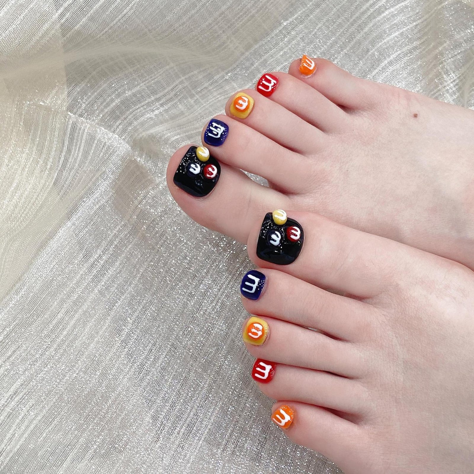 Wujasmine Press on nails-Pure handmade original wearable nails, yellow M&M’s toenail patches, fair-skinned toenail art in summer, detachable