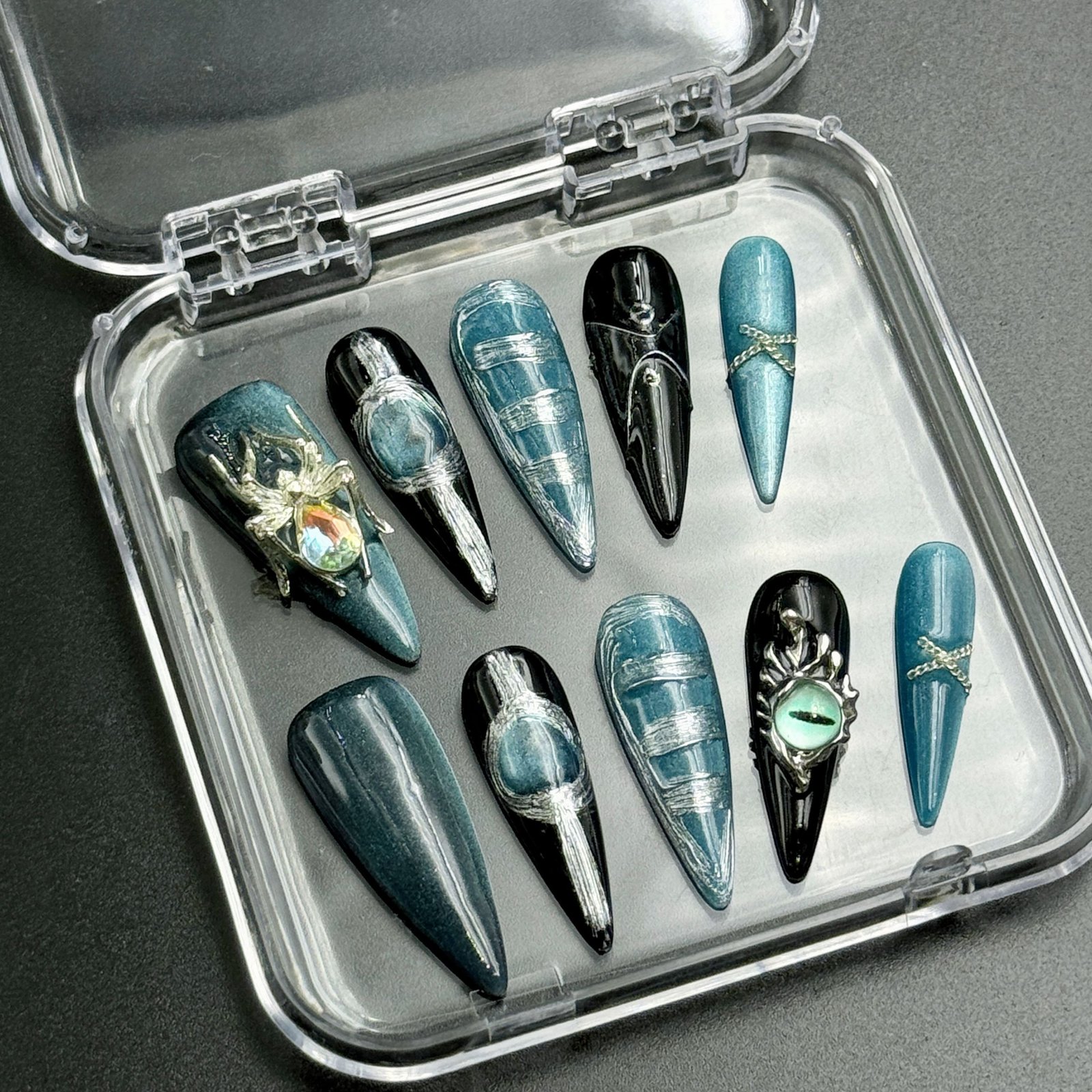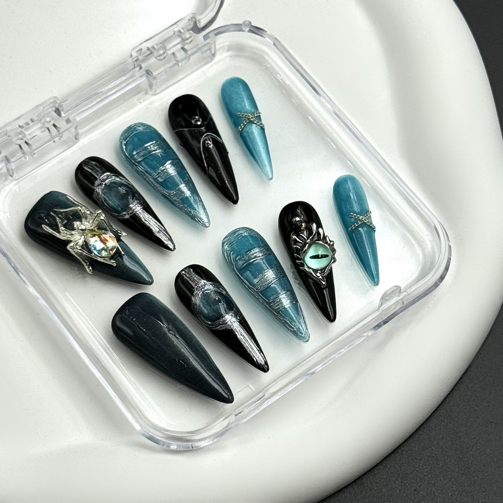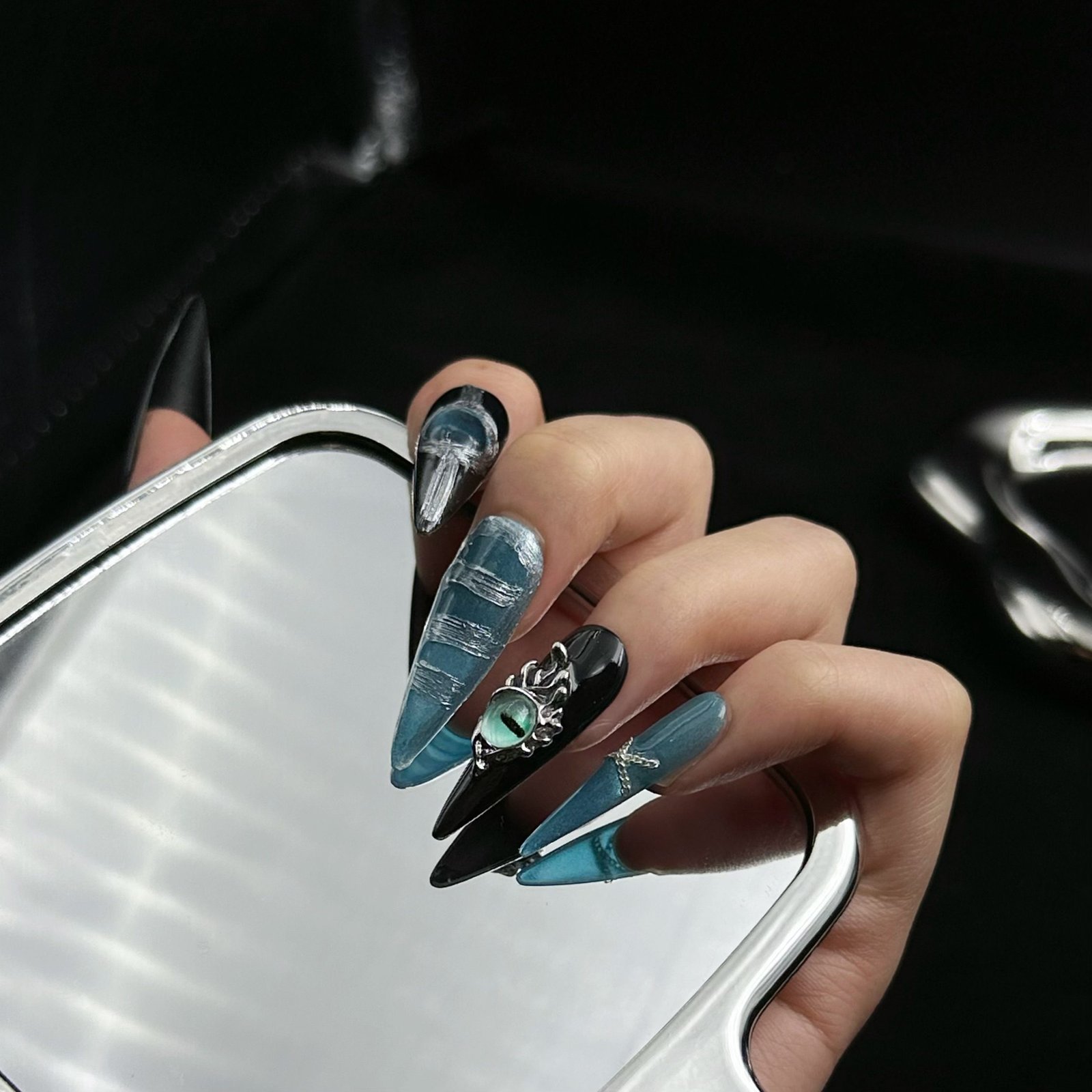 Wujasmine Press on nails The Evil Eye-Long Length Press On Nails