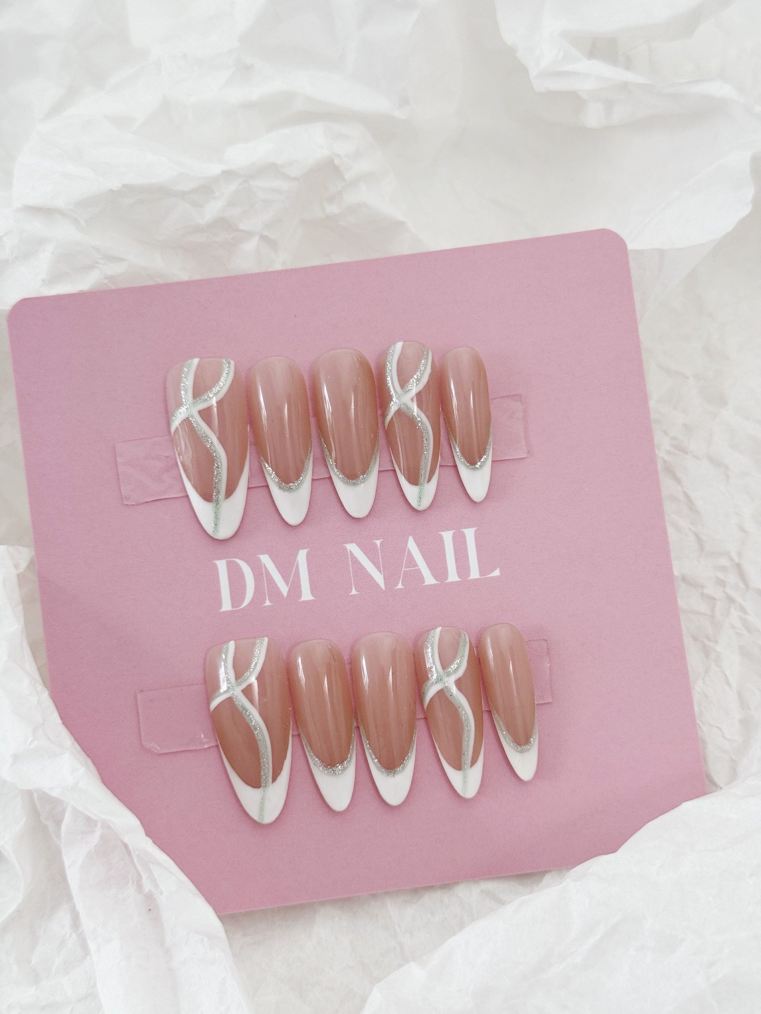 Wujasmine Press on nails fake nails -French Silver Glitter✨