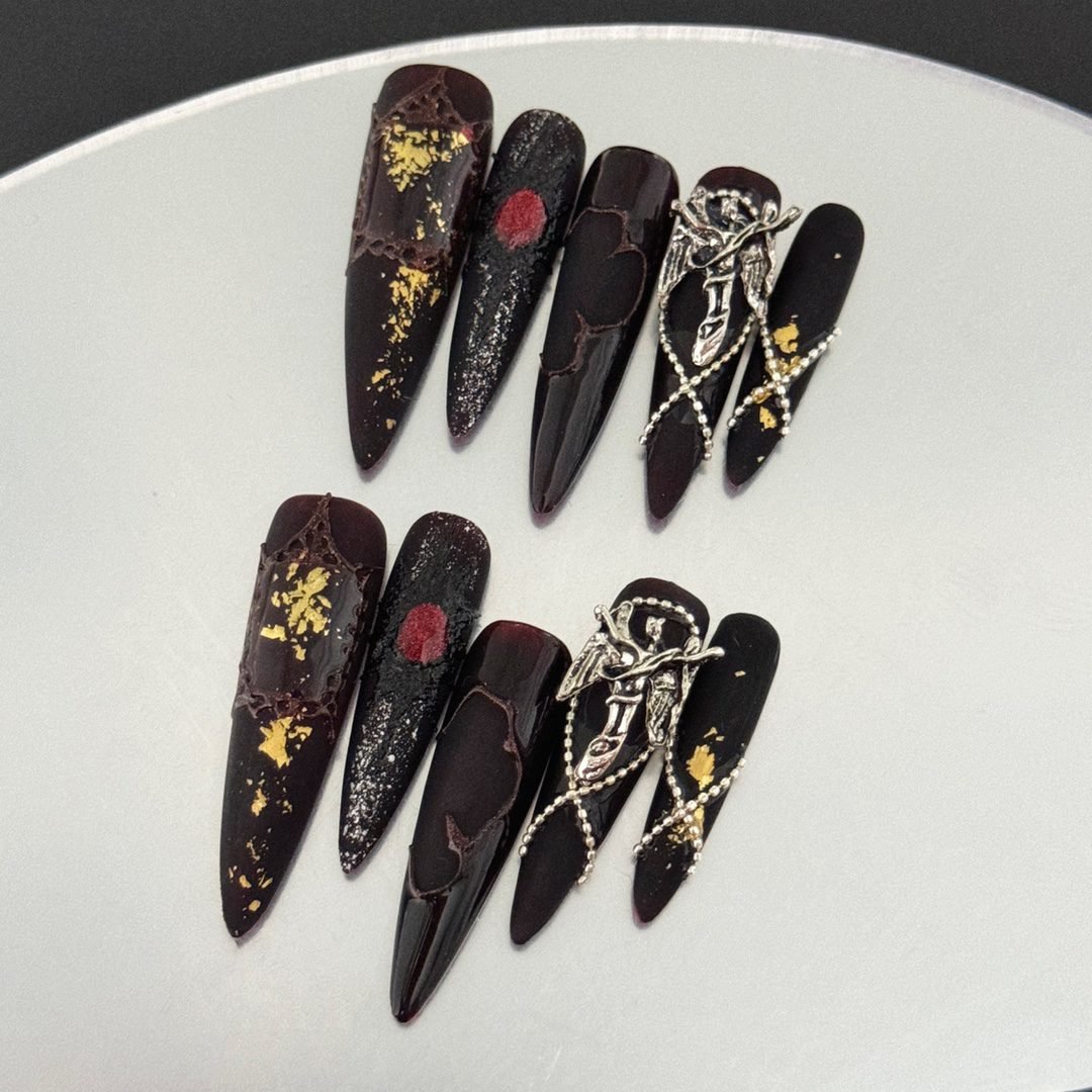 Wujasmine Press on nails Halloween cat’s eye rubbing