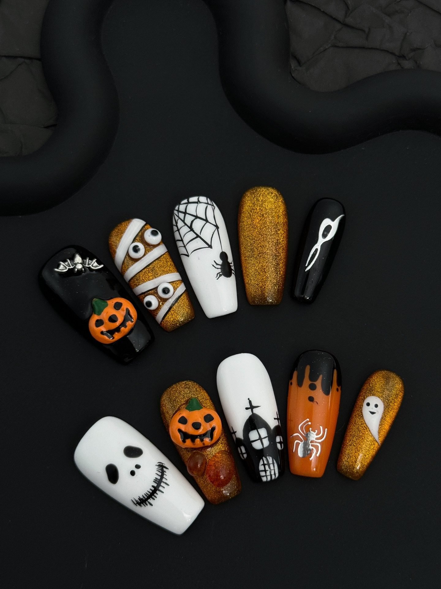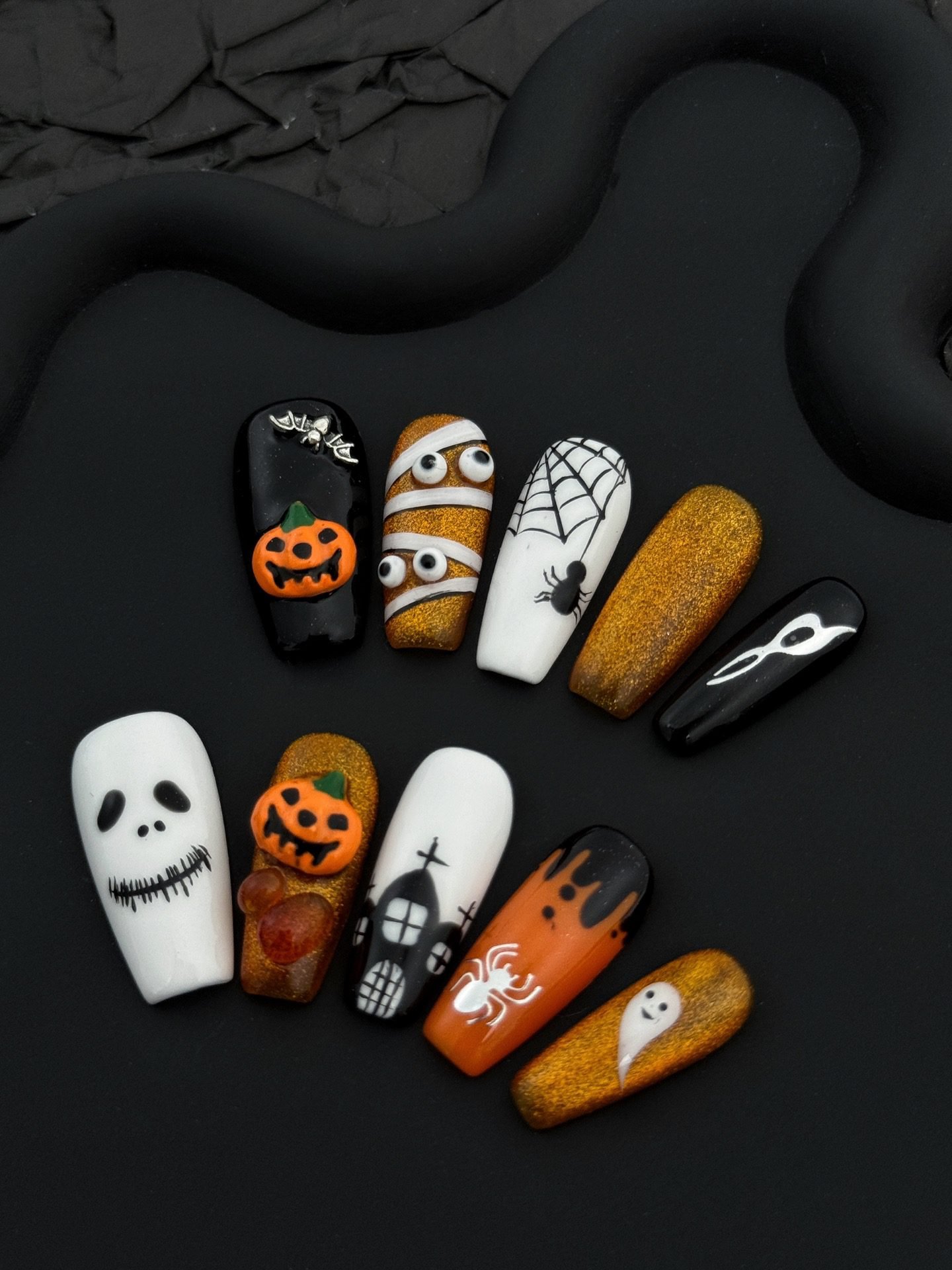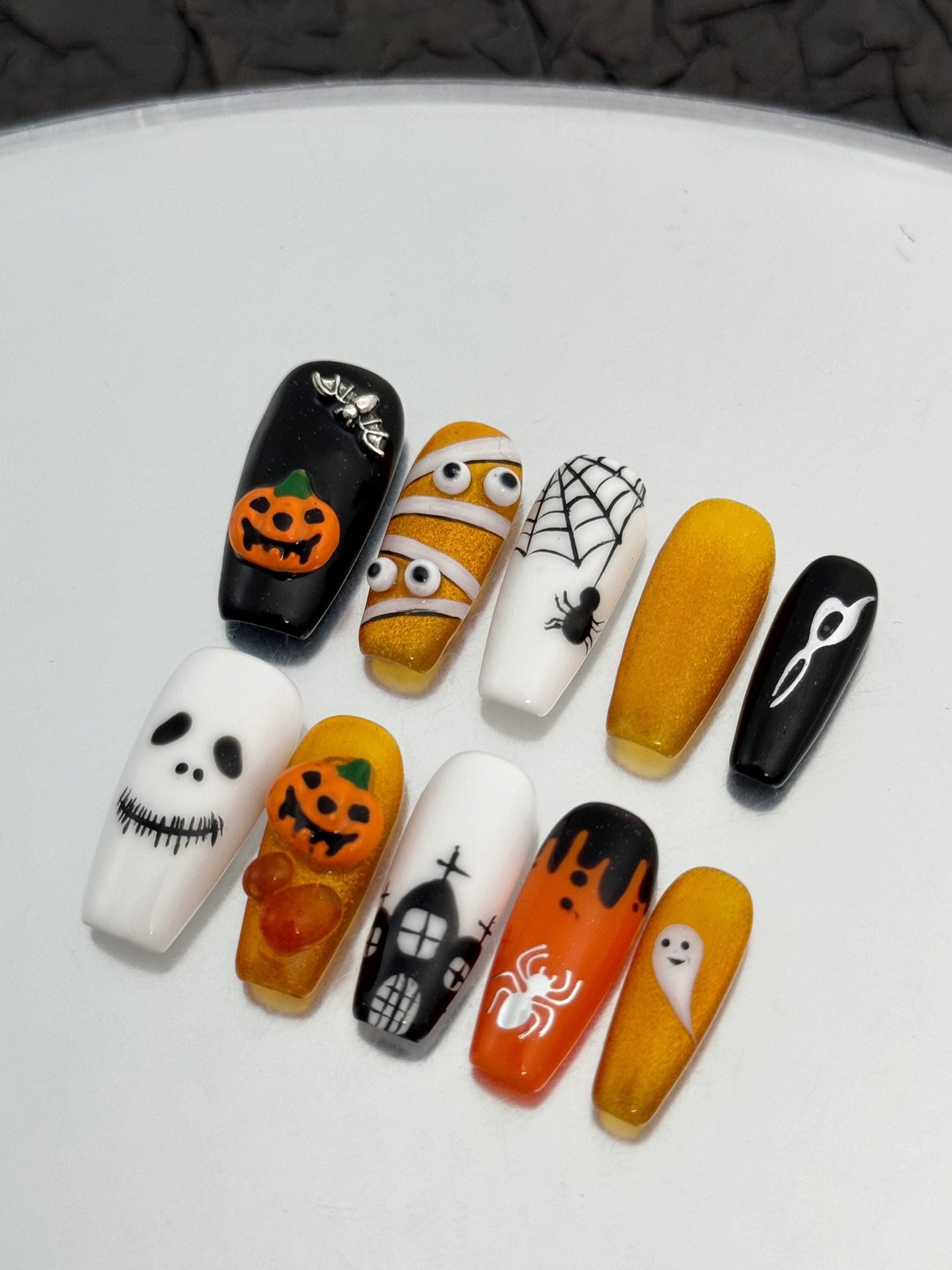 Wujasmine Press on nails Halloween pumpkin and little ghost